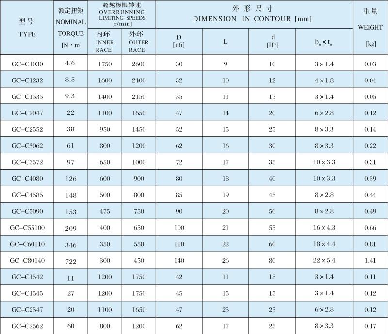 陜西GC-C滾柱式單向離合器